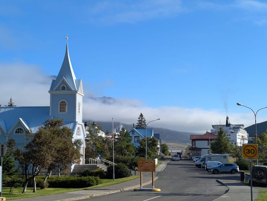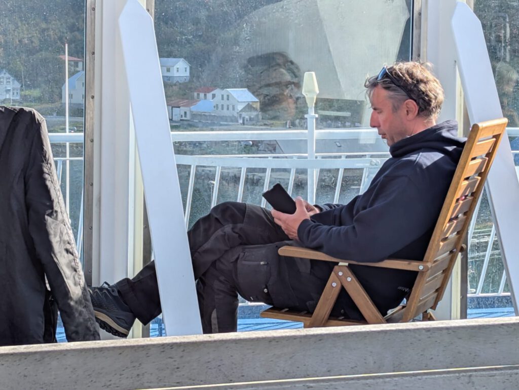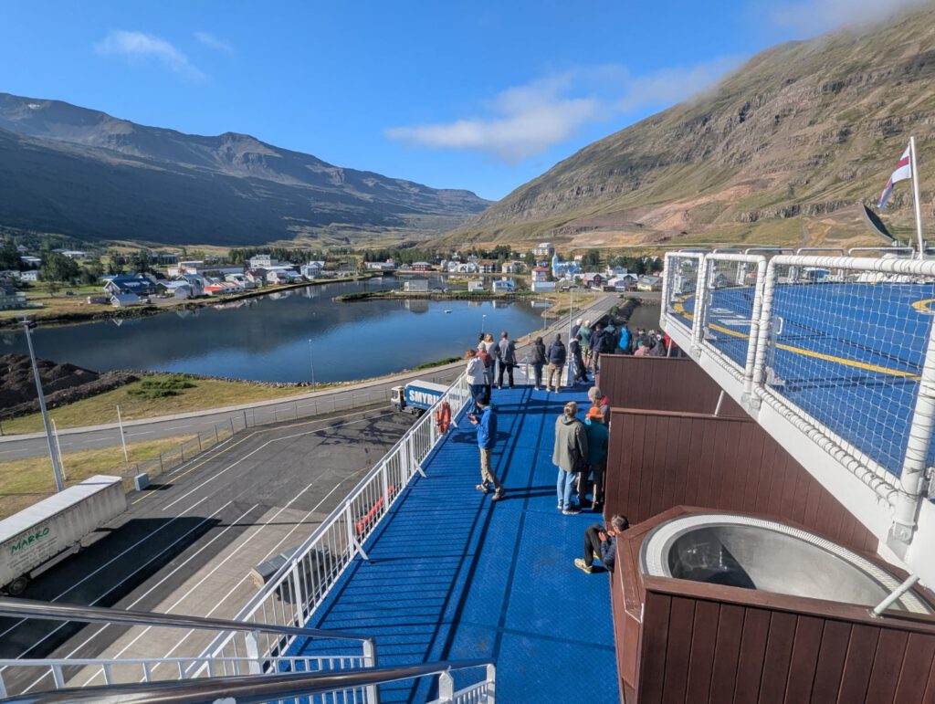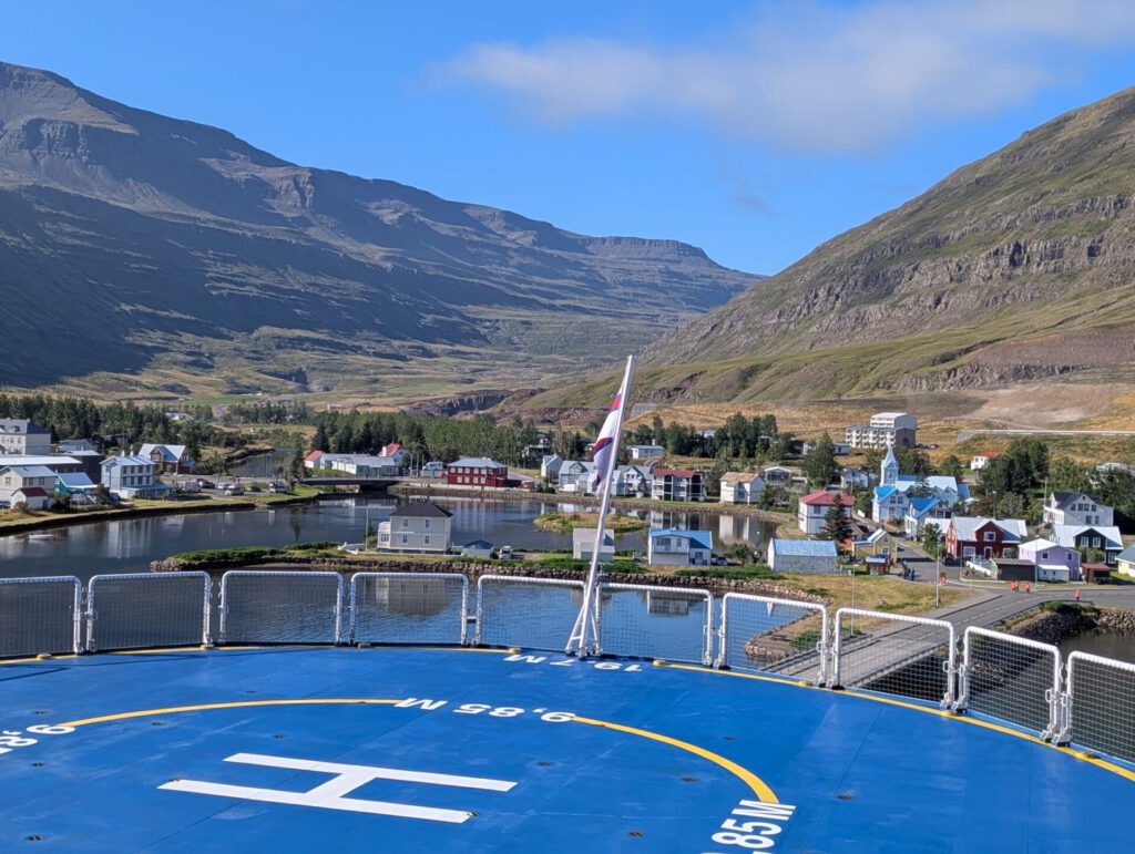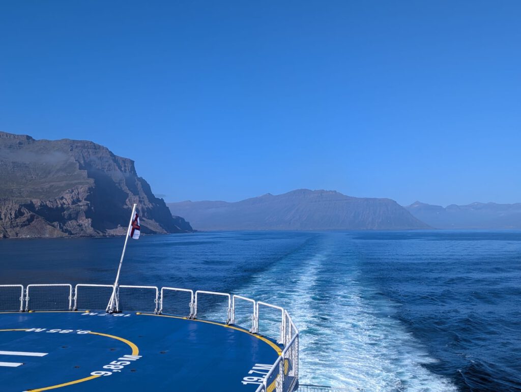 Wir hatten bereits gedacht, dass es uns schwerfallen würde, Abschied von Island zu nehmen. An diesem Morgen merken wir jedoch, dass es Island scheinbar ebenso schwer fällt, uns loszulassen. Einige Fragen schwirren uns im Kopf umher, die wir mit auf die Fähre nehmen: Haben wir uns verändert? Hat die Welt sich verändert? Was hat sich durch die Reise verändert? Die Sonne scheint, der Himmel ist blau und das Wasser liegt spiegelglatt im Hafen. Schweigend packen wir zum letzten Mal unsere Zelte zusammen, schieben uns zwischen den anderen Autos auf die Fähre und spüren die Wehmut des Abschieds. Gleichzeitig wissen wir aber auch, dass dies kein Abschied für immer ist. Denn wir werden zurückkehren – dabei sind wir uns mehr als sicher. Wir sind froh, dass wir nicht direkt zurück nach Deutschland fliegen, sondern zwei Tage auf der Fähre haben, um die Insel langsam hinter uns zu lassen.