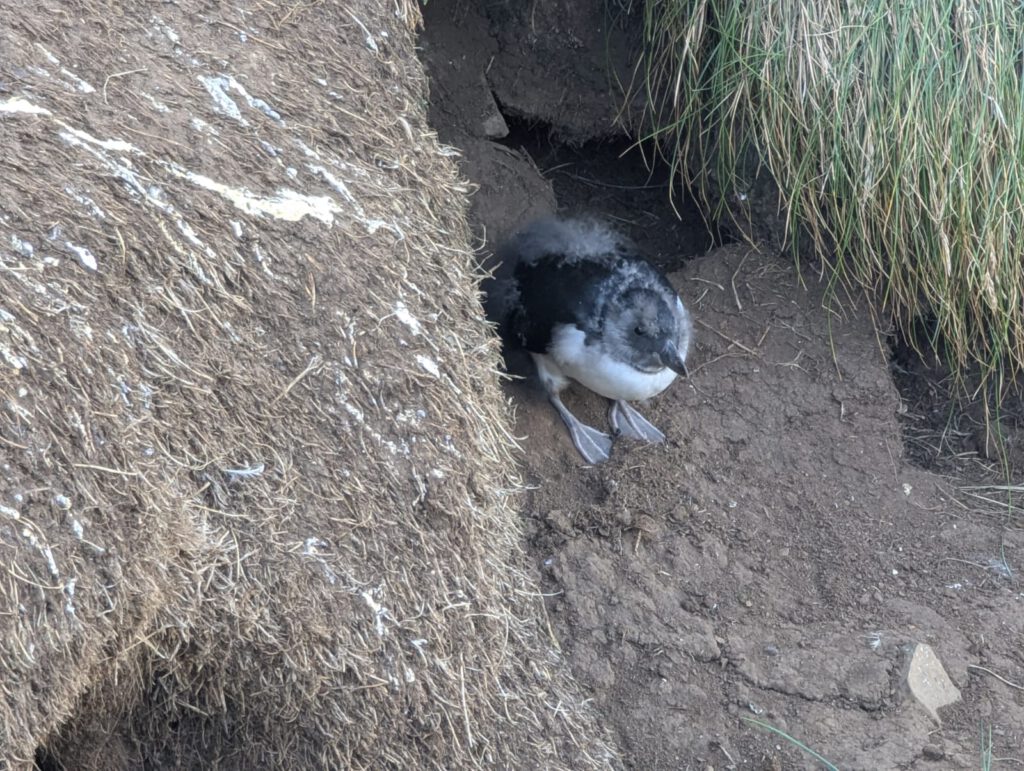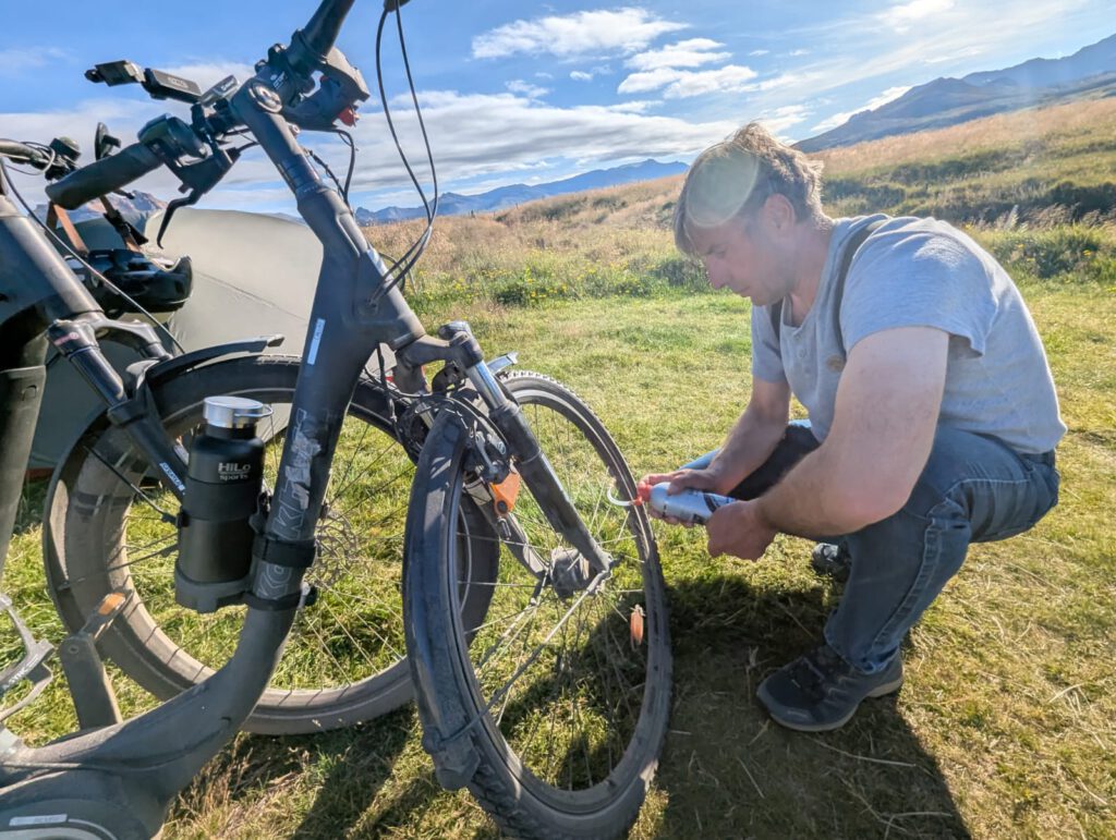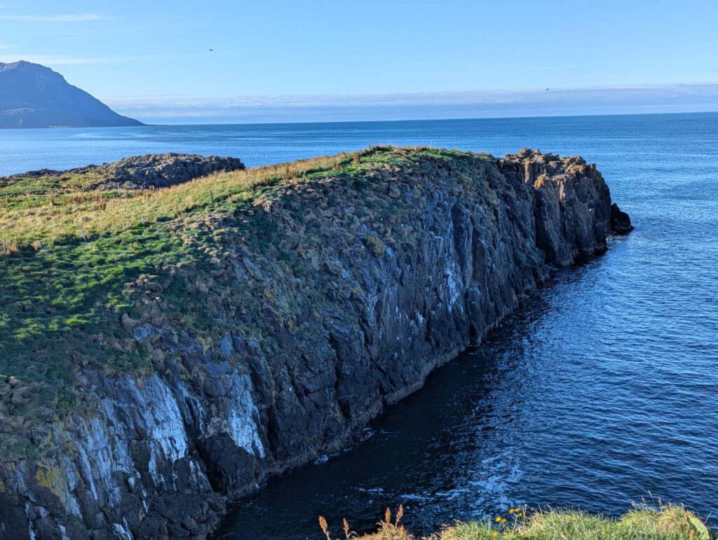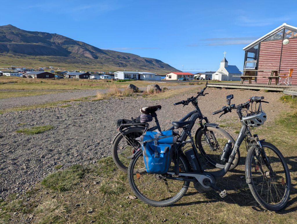 In Bakkafjörður fahren wir mit den Fahrrädern durchs Tal zum Puffinfelsen. Doch dann bemerkt Jürgen, dass einer seiner Reifen platt ist. Wir sind so dankbar, denn es ist der letzte Reiseabschnitt und so lange haben uns unsere Räder bereits gute Dienste erwiesen. Wir flicken den Reifen provisorisch. Am Felsen sind nur noch Möwen, die Puffins sind bereits aufs offene Meer gezogen, wo sie die nächsten Monate verbringen werden. Nur ein einsames, junges Puffin sitzt still und wartet. Auch dieser Moment erinnert uns an unsere Kinder Zuhause, die ebenfalls geduldig darauf warten, bis wir wieder zurückkommen. Island war für uns jeden einzelnen Tag der Reise überwältigend, wunderschön und stärkend zugleich. Trotzdem mischen sich Heimweh und Sehnsucht nach Hause immer mehr dazu.